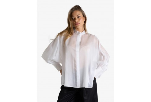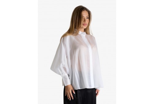 JIJIL JPE26BL123.0CH0045/0001 BLUSA WHITE. Questa blusa bianca in tessuto leggero e semitrasparente incarna un'eleganza eterea e moderna. Caratterizzata da una vestibilità oversize e un raffinato collo alla coreana, si distingue per le scenografiche maniche a sbuffo con polsini alti. L'abbottonatura a scomparsa completa questo capo versatile, perfetto per look urban chic ricercati.
