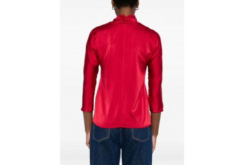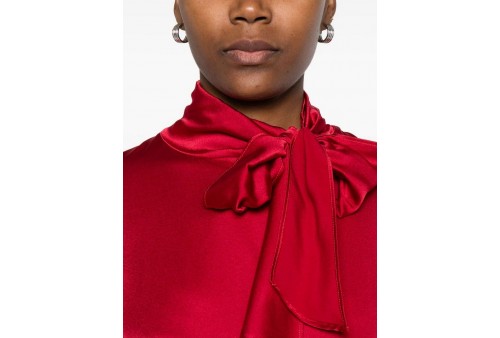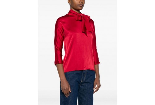 JUCCA blusa seta con fiocco. Blusa con fiocco da annodare al collo, manica 3/4. COLORE: CHERRY