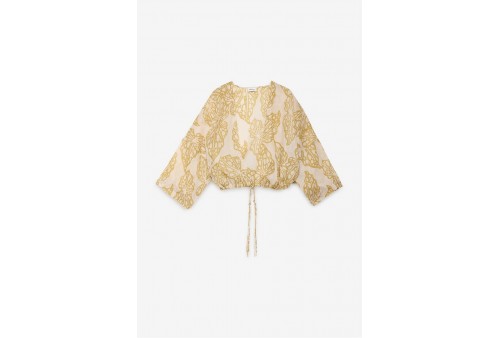 OTTOD'AME DC5280 Kimono in ramiè stampato. Kimono aperto in 100% ramiè dalla linea fluida, con maniche ampie, coulisse regolabile al fondo e stampa all over ispirata alle foglie di begonia.