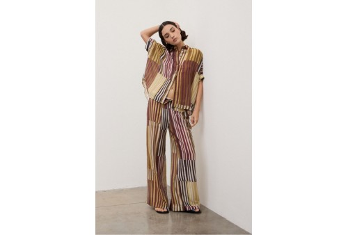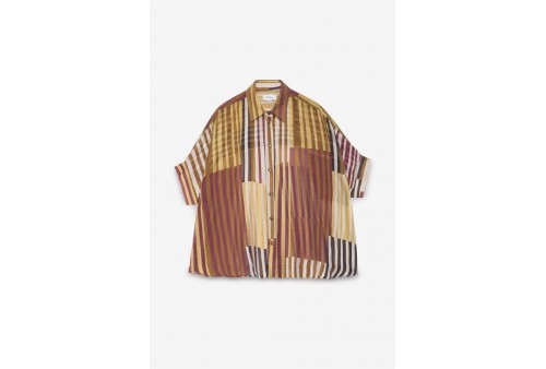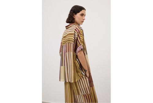 OTTOD'AME DC5290 Camicia boxy fit. Camicia boxy fit con manica corta e stampa patchwork a righe.Camicia boxy fit con manica corta, realizzata in un tessuto leggero in misto TENCEL™. Il volume rilassato la rende ideale per la stagione estiva, da abbinare a pantaloni palazzo, shorts o gonne per un look fresco e bilanciato.
