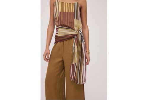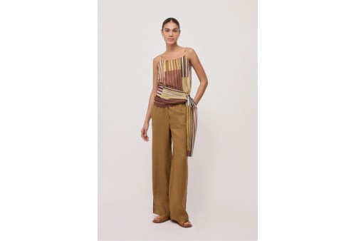 OTTOD'AME DT9289 TOP CON NODO. Top smanicato con nodo sul fianco, che definisce la silhouette con un dettaglio discreto. Realizzato in un tessuto leggero in misto TENCEL™, è un capo leggero e femminile, ideale per completare outfit estivi abbinato a pantaloni ampi o gonne fluide.