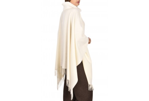 GRAN SASSO PONCHO JERSEY CON FRANGE. Poncho in tessuto misto cashmere con frange sul fondo e collo a coste in misto cashmere. Un capo dalla linea minimale, versatile e contemporanea, perfetto per un look quotidiano comodo e raffinato. Fit over. COLORE: PANNA