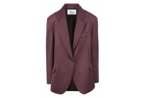8PM BLAZER ROSE. Blazer in gabardine.Collo con revers regolare.Spalline imbottite.Maniche lunghe.Chiusura frontale con bottone.Taschina frontale a filetto sul petto.Pinces frontali.Due tasche frontali con patta.Nastrini laterali da annodare.
