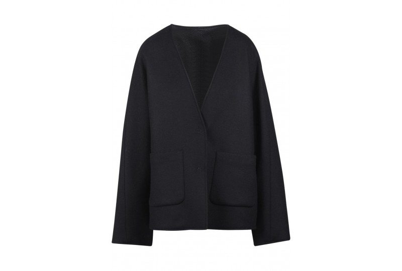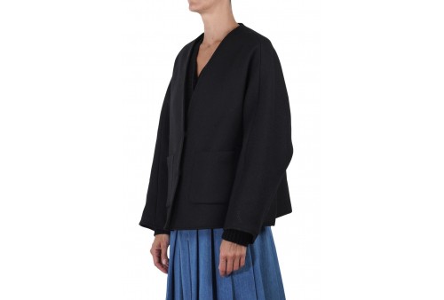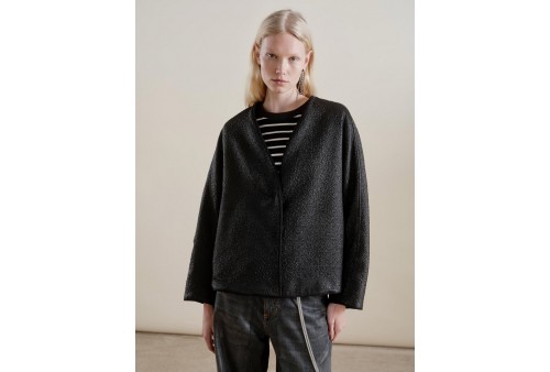 8PM GIACCA PAULINE DOUBLEFACE. Giacca in misto lana double face. Scollo a V. Spalle scivolate. Chiusura con bottoni a pressione.Maniche lunghe ampie. Due tasche frontali. Tasche a filetto interne.Effetto laminato stropicciato.