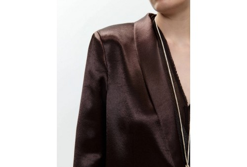 ALYSI 116815/P6061 BLAZER SMOKING CHOCO . Blazer monopetto in tessuto effetto raso cangiante