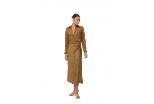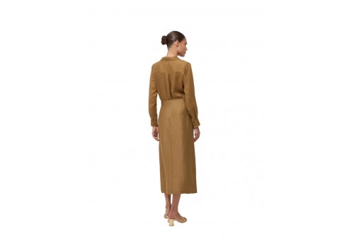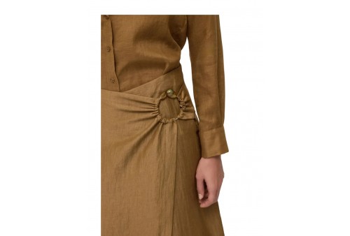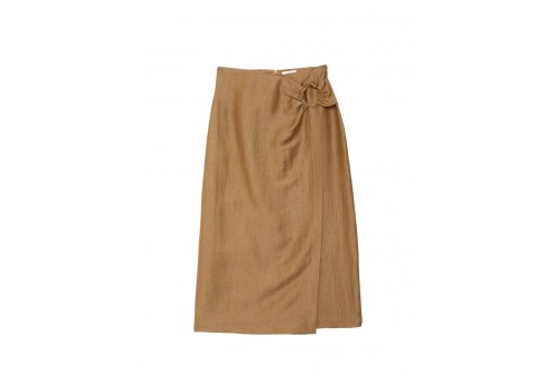 OTTOD'AME DN6288 SKIRT RHUM. La gonna Ottod'Ame è una midi a portafoglio in misto lino color "Rhum" (marrone). Presenta una linea fluida, chiusura a portafoglio e un caratteristico anello gioiello sul fianco. Ideale per la Primavera/Estate, è una gonna dal taglio "effortless chic" made in Italy.
