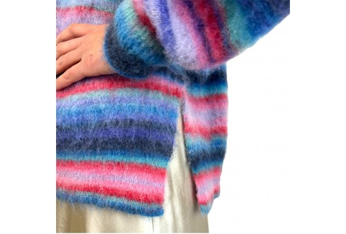 ROBERTO COLLINA MAGLIONE. Maglione girocollo dalla vestibilità comoda, realizzato da un mix di lana e mohair dall'effetto peloso. Maniche lunghe. Spacchetti laterali.