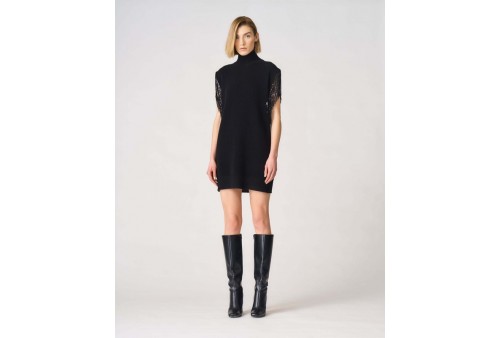 JUCCA LUPETTO FRANGE PAILLETTES. Lupetto in lana senza maniche caratterizzato da frange il con paillettes tono su tono. colore: nero