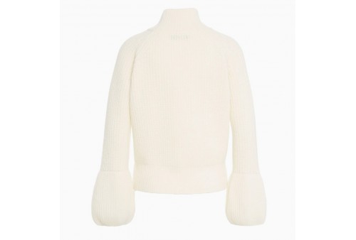 JUCCA Lupetto in lana. un capo essenziale e senza tempo per ogni guardaroba. Presenta un elegante collo alto e distintive maniche a campana che aggiungono un tocco moderno al design. La fine trama a coste sottolinea l'artigianato di alta qualità e garantisce un comfort ottimale. Made in Italy, questo modello incarna una squisita arte.