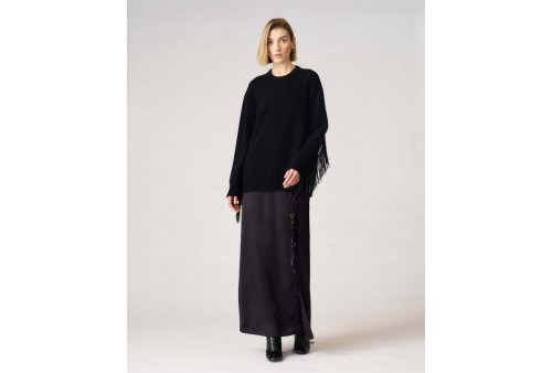 JUCCA MAGLIA FRANGE PAILLETTES. Maglia in lana girocollo. Maniche lunghe. Frange con paillettes tono su tono. colore: nero