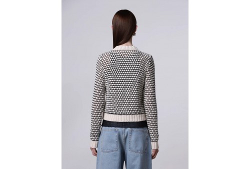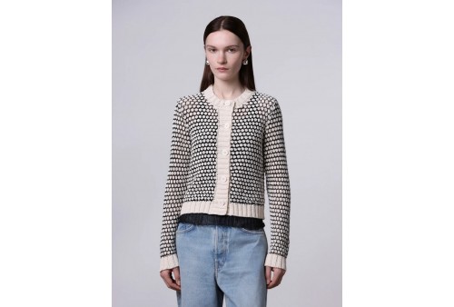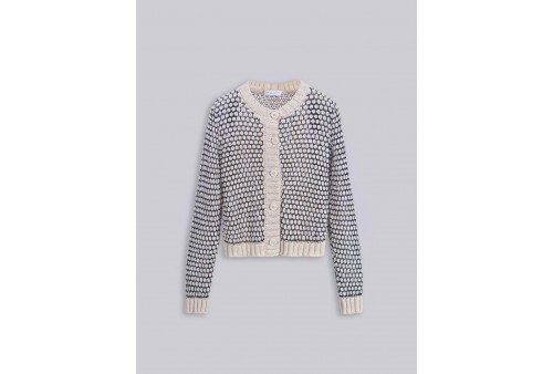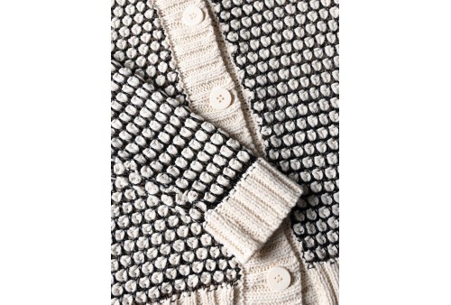 ROBERTO COLLINA Cardigan punto nocciolina 261FXA48020. Cardigan dalla vestibilità regolare realizzato in un mix di cotone. Il capo è caratterizzato da una lavorazione a punto nocciolina in maglia che intreccia cotone e fili metallici per enfatizzarne l'effetto lucido. Presenta un'allacciatura sul davanti con bottoni e collo rotondo. Rifinito con fondi e polsi a costine.