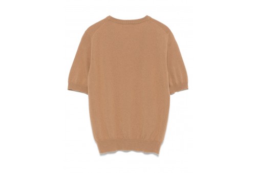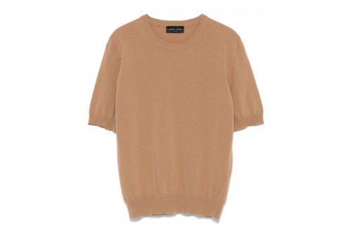 ROBERTO COLLINA MAGLIA. Maglia in lana merino misto cashmere, design lavorato a maglia, maniche corte, girocollo, orlo e polsini a coste.