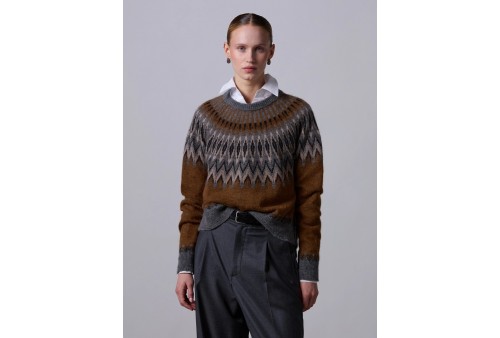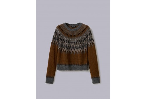 ROBERTO COLLINA MAGLIA JACQUARD. Maglia dalla vestibilità regolare realizzata con un mix di lane. Presenta rifiniture a costine su scollo, fondi e polsi ed è caratterizzata da uno jacquard in stile nordico sul carré della maglia. -Vestibilità regolare . Jacquard nordico. COLORE: CAM