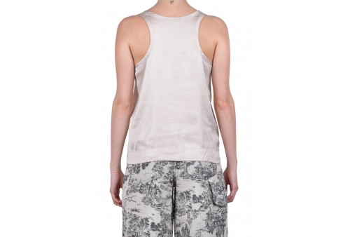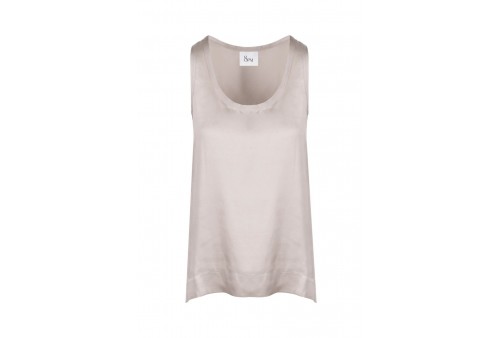 8PM D8PM61H101/139 MALAGA TOP NATURALE . Top canotta Malaga. Scollo rotondo. Senza maniche. Tessuto con finitura satinata. Spacchetti laterali sul fondo. Orlo dritto.