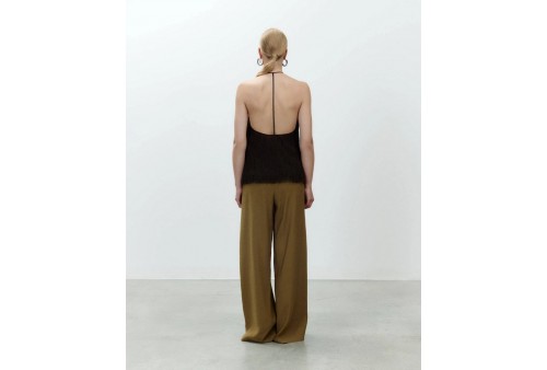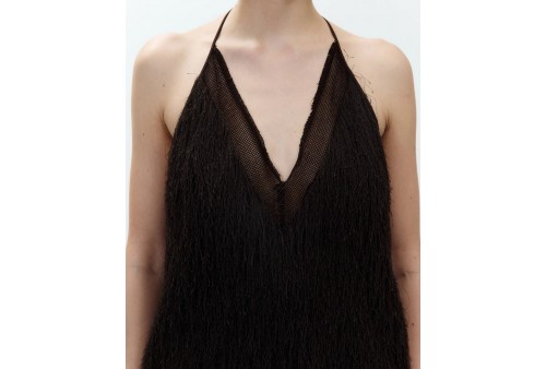 ALYSI 116225/P6058 TOP SCOLLATO CHOCO . Top in tessuto con frange