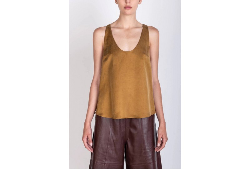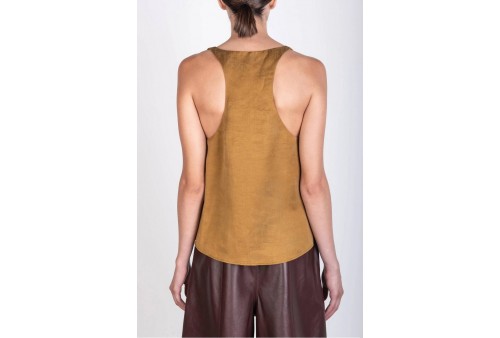 ALYSI 116239/P6062 CANOTTA SC. TONDO OLIO. Top smanicato in tessuto misto lino