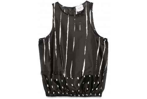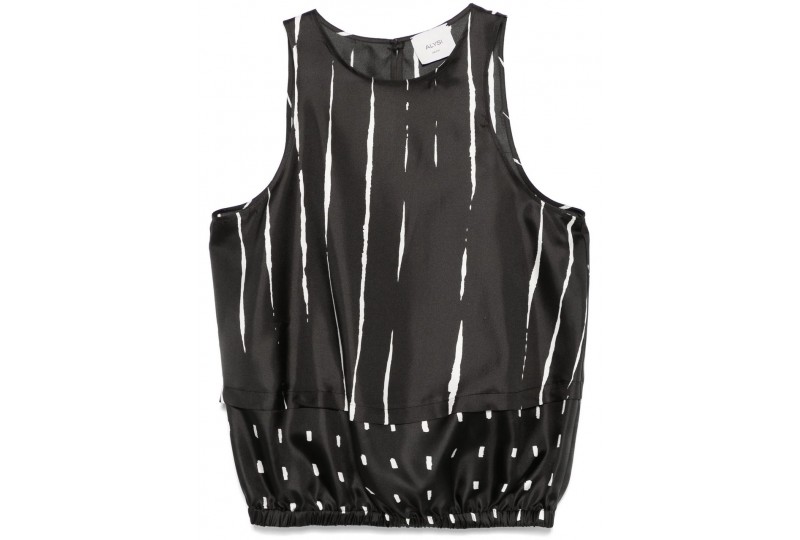 Alysi Top Balloon in Seta Lines & Dots. Top Alysi in con elastico sul fondo in pura seta fantasia. Collo a giro. Elastico sul fondo. Allacciatura sul retro