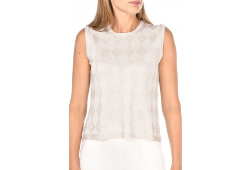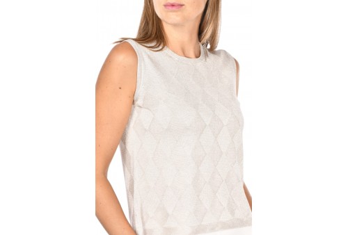 GRAN SASSO DONNA 57211/23011/056 CANOTTA CIPRIA. La canotta Gran Sasso in viscosa lurex è il capo perfetto per brillare senza mai rinunciare al comfort tipico del brand, ha un design essenziale impreziosito da una trama con rombi.