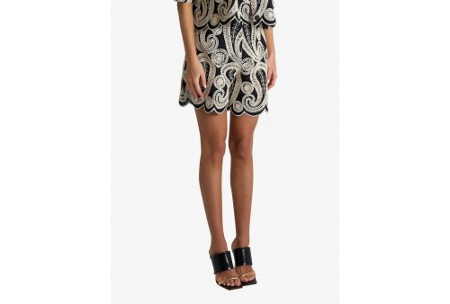 JIJIL JPE26SH148.0PZ0023/0266 SHORT NERO-AVORIO. Questi short Jijil in cotone fondono eleganza e stile urban. Caratterizzati da un elaborato ricamo paisley macramè in contrasto crema su fondo nero, presentano una raffinata vita alta e un originale orlo a lobi smerlato. Un capo distintivo e femminile, perfetto per un look estivo ricercato e di tendenza.