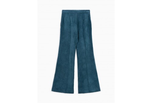 8PM PANTALONE VELLUTO MARIGOLD-A. Pantalone in velluto a coste, due tasche alla francese sul davanti, chiusura centrale con zip nascosta e gancio, piega sul davanti, vestibilità aderente nella parte superiore. PETROLIO
