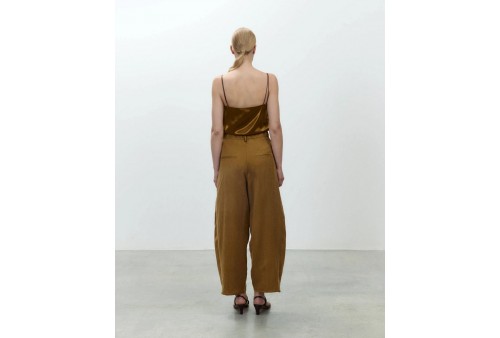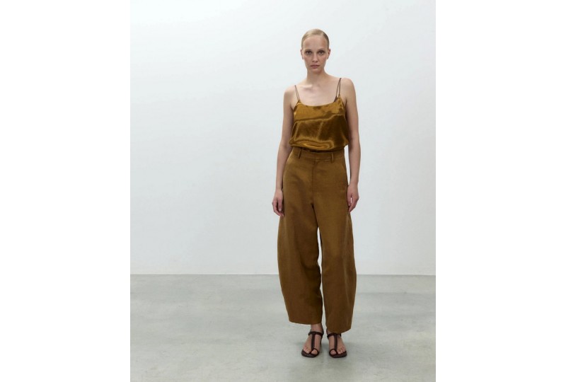 ALYSI 116135/P6062 PANTALONE OLIO . Pantalone barrel in tessuto misto lino