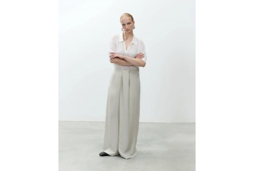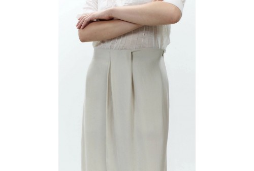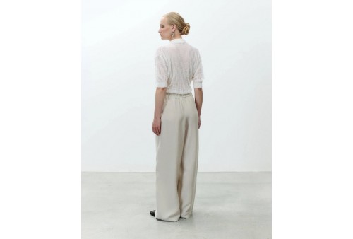 ALYSI 116149/P6003 PANTALONE DRAPPEGGIO GESSO . Pantalone in tessuto 100 % seta