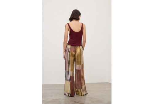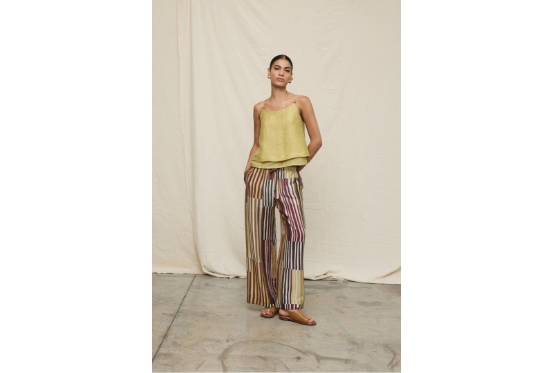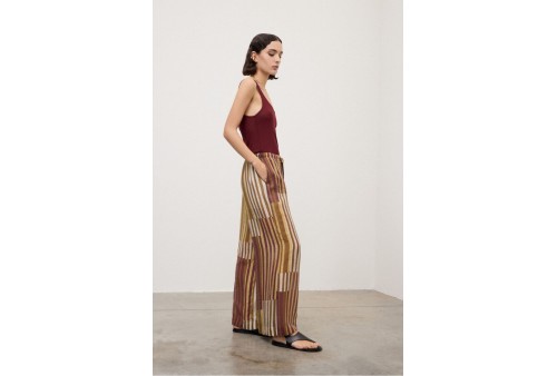 OTTOD'AME DP0063 PANTALONE PALAZZO. Pantaloni palazzo con elastico in vita, caratterizzati da una linea ampia e fluida, che garantisce comfort e libertà di movimento. Realizzati in un tessuto leggero in misto TENCEL™, sono perfetti per la stagione estiva, da indossare con top aderenti o camicie leggere.