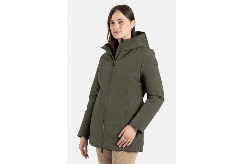 CANADIENS KATE/W. Giubbino pensato per offrirti protezione, comfort e stile in ogni condizione climatica. Realizzato in tessuto tecnico Hidra-Nek®, resistente, performante e dal look moderno, Kate garantisce una barriera efficace contro vento e umidità, accompagnandoti con affidabilità sia in città che nelle uscite outdoor. L’imbottitura interna in Soft Polyfill assicura un calore leggero e uniforme, mantenendo il corpo alla giusta temperatura senza appesantire, mentre il tessuto stretch segue i tuoi movimenti per una vestibilità flessibile e confortevole tutto il giorno. Il design funzionale è completato da una chiusura frontale con zip, tasche laterali con zip per custodire i tuoi oggetti in sicurezza, e un cappuccio fisso perfetto per ripararti da pioggia leggera e vento. All’interno, la fodera in morbida eco fur dona una sensazione avvolgente di calore e morbidezza, rendendo Kate un capo irrinunciabile nelle giornate più fredde della stagione.COLORE: MILITARY
