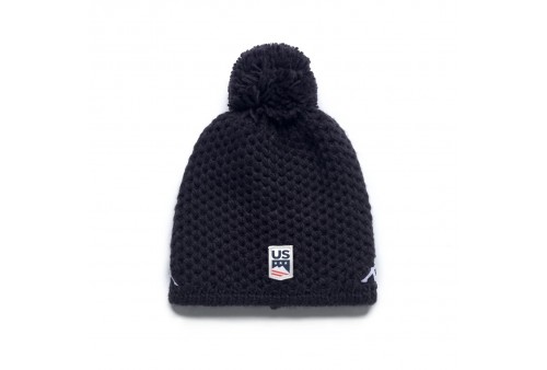 KAPPA BERRETTO FLOCK3 US UNISEX BLU BARITONE. Berretto unisex realizzato in misto lana e acrilico, con interno in pile per calore e comfort extra. Completo di pompon, i dettagli distintivi includono logo Omini e personalizzazioni US Ski and Snowboard Team.