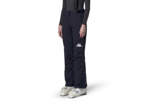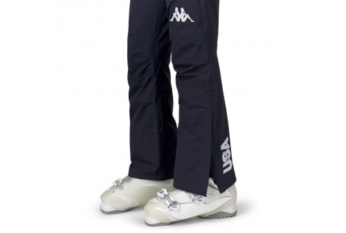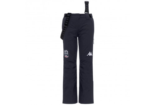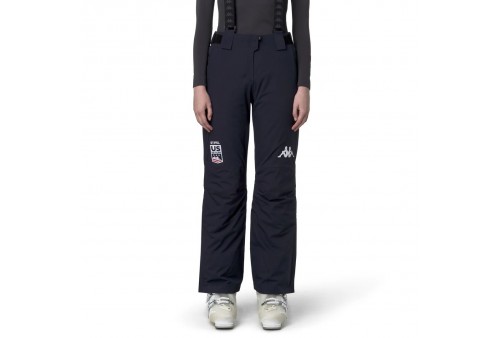 KAPPA PANTALONI 834 US 8CENTO BLUE BARITONE. Pantaloni da sci imbottiti impermeabili da donna con vita regolabile. Pantaloni donna imbottiti, in tessuto 2strati stretch con tecnologia WATERPROOF PROTECTION 10,000 mm H2O, BREATHABILITY 10,000 g/m²/24h, con trattamento idrorepellente PFC-Free, imbottitura 60gr. SLIM FIT. Bretelle staccabili personalizzate Banda con ripetizione del logo Omini, regolazione vita, tasche con chiusure zip impermeabili, rinforzi fondo gamba, apertura zip fondo gamba, ghette scarponi, cuciture termonastrate. Logo Omini ricamato. US SKI & SNOWBOARD.