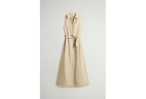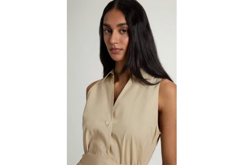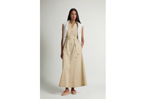 WOOLRICH chemisier CFWWDR2022FRUT3944/8640 WHITE PEPPER. Il vestito chemisier in popeline di puro cotone interpreta un’estetica strutturata, valorizzata da un tessuto leggero e compatto. Il popeline mantiene una caduta ordinata, offrendo freschezza durante la stagione più calda. Il colletto a camicia e la chiusura con bottoni definiscono una linea classica, con la cintura in vita che permette di modulare la silhouette. L'etichetta laterale logata completa il design.