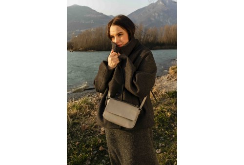 AVENUE67 BORSA SMOOTH. Borsa piccola, manico fisso, chiusura con bottone e cerniera, unico vano interno, tasca interna con zip e tasca portaoggetti, tracolla rimovibile e allungabile max cm 128. COLORE: GRIGIO PERLA