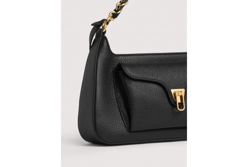 COCCINELLE Beat Generation medium NOIR . Coccinelle Beat è una tra le icone del brand: la distintiva chiusura a battente con il plettro è il simbolo d’identità Coccinelle, che per questa collezione si reinventa con funzionalità contemporanee ed eleganti. La borsa a spalla è impreziosito dal manico in pelle e catena, un mix perfetto tra struttura e morbidezza, tra praticità e design contemporaneo. Questo modello è realizzato in pelle lavorata tramite specifici macchinari e poi bottalata al fine di mantenerne la morbidezza. È una pelle molto resistente che si presta a una facile pulizia, ideale per un uso quotidiano.