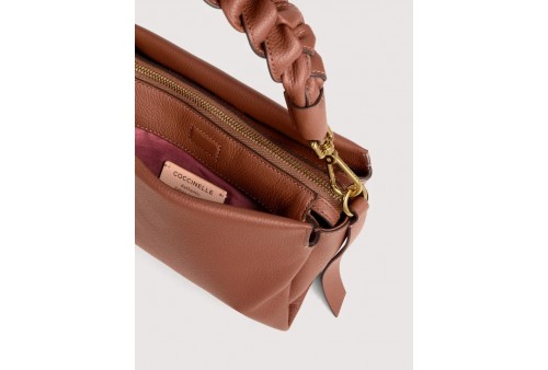 COCCINELLE Boheme Small COGNAC.Boheme è una linea realizzata in morbida pelle double e caratterizzata dal manico intrecciato che la rende femminile e contemporanea. Una borsa compatta, ma in grado di contenere tutto l'essenziale, è la borsa ideale per le donne più dinamiche. Questo modello è realizzato in pelle lavorata tramite specifici macchinari e poi bottalata per ottenere una mano particolarmente morbida. Questa particolare tipologia di pelle viene rifinita da entrambi i lati con pigmenti per ottenere l'effetto double. È un materiale resistente e adatto ad un uso quotidiano.