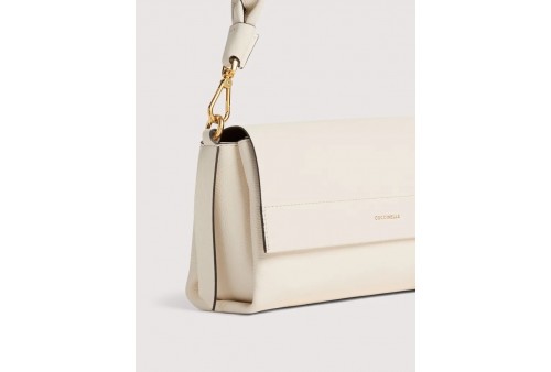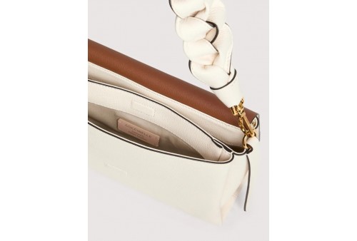COCCINELLE Boheme Small PEARL/COGNAC. Boheme è una linea realizzata in morbida pelle double e caratterizzata dal manico intrecciato che la rende femminile e contemporanea. Funzionale e capiente, è la borsa ideale per le donne più dinamiche. Questo modello è realizzato in pelle lavorata tramite specifici macchinari e poi bottalata per ottenere una mano particolarmente morbida. Questa particolare tipologia di pelle viene rifinita da entrambi i lati con pigmenti per ottenere l'effetto double. È un materiale resistente e adatto ad un uso quotidiano.