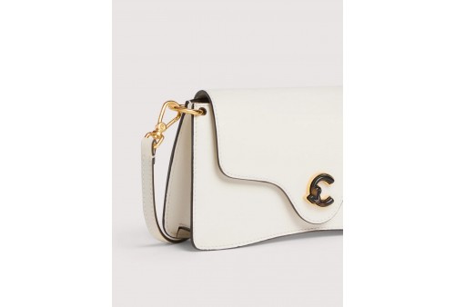 Coccinelle C-Me Small e5u4g270101 PEARL. La minibag della linea C-Me è impreziosita dal logo reinterpretato attraverso la C di Coccinelle che si annoda e abbraccia il plettro, elemento iconico del brand. Uno stile femminile ed elegante, grazie ai dettagli sinuosi della patta, che la rendono perfetta per arricchire ogni look. Questo modello è realizzato con pellame liscio conciato con speciali grassi e oli in modo da donargli un aspetto resistente ed elegante.