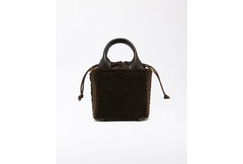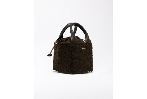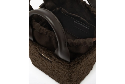 DATE CUBO BAG TEDDY CHOCO.Borsa a mano di manifattura italiana realizzata in morbido tessuto teddy colore bianco.