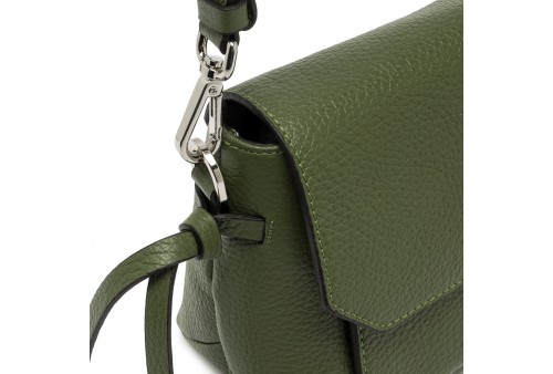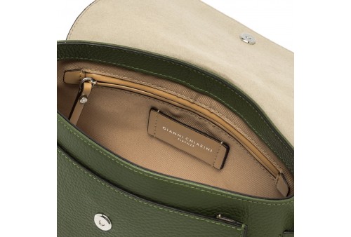 GIANNI CHIARINI BS 11762 GRN BRINA DEEP FIRE. Brina by Gianni Chiarini Firenze è una borsa in pelle martellata con linee minimal e squadrate. I dettagli annodati e i componenti in metallo aggiungono un tocco luminoso. È dotata di una tracolla regolabile e removibile, ideale per un'opzione crossbody. La chiusura superiore con zip garantisce sicurezza e praticità. Dimensioni: 25x17,5x8 cm.