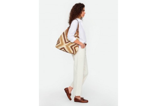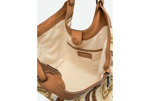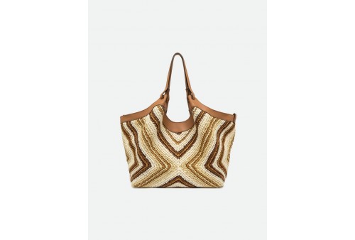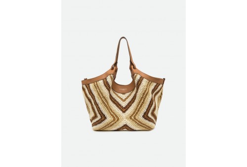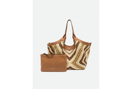 GIANNI CHIARINI BS 12190 DIAMIX DUA VAR. CUOIO. L'icona del brand, la borsa DUA, è realizzata in paglia intrecciata, caratterizzata da una texture unica e distintiva. Dotata di un monoscomparto, presenta profili superiori in pelle e doppi manici in tono. Pratica ed essenziale, è perfetta per completare ogni look con stile. Dotata di una pratica pochette con chiusura a zip. Dimensioni: 34x38x16 cm.