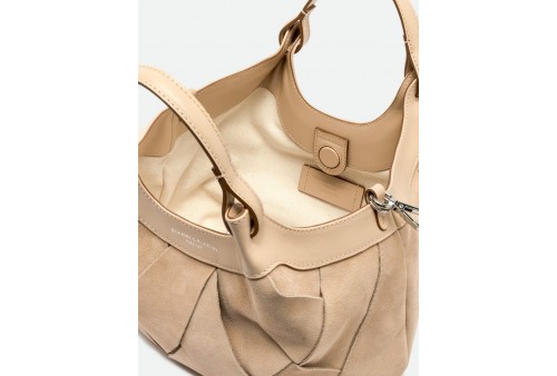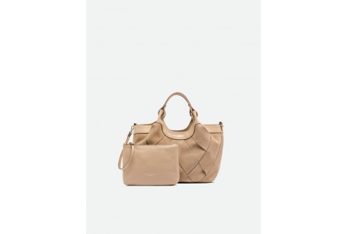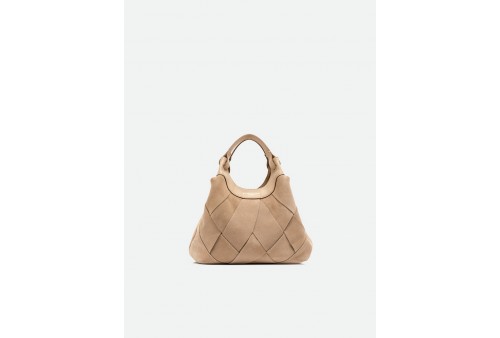 GIANNI CHIARINI BS 12349 INT-CM DUA NUDE. DUA è l'icona del brand, una borsa dal design semplice ma contemporaneo. Realizzata in pelle di camoscio con trama geometrica, si distingue per il suo stile country-chic che la rende un must-have di stagione. I profili in pelle esaltano la naturalezza dei suoi colori, mentre la lavorazione della trama aggiunge carattere e raffinatezza. Dotata di un monoscomparto e doppi manici in tono, si chiude con un bottone a pressione. Può essere portata a mano o crossbody grazie alla tracolla inclusa. Dimensioni: 24x27x12 cm.