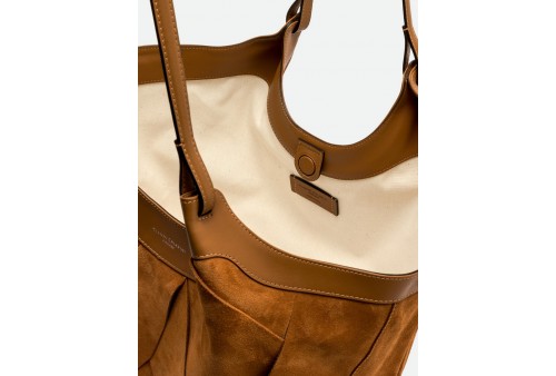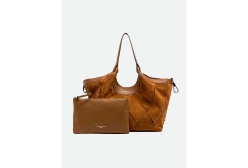 GIANNI CHIARINI BS 12350 INT-CM DUA CARAMEL. DUA è l'icona del brand, una borsa dal design semplice ma contemporaneo. Realizzata in pelle di camoscio con trama geometrica, si distingue per il suo stile country-chic che la rende un must-have di stagione. I profili in pelle esaltano la naturalezza dei suoi colori, mentre la lavorazione della trama aggiunge carattere e raffinatezza. Dotata di un monoscomparto e doppi manici in tono, si chiude con un bottone a pressione. Dimensioni: 34x38x16 cm.