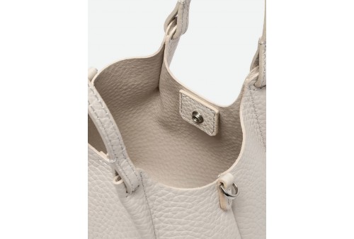 GIANNI CHIARINI BS 9718 RNGDBL T.U. DUA SABBIA.L'icona del brand, la borsa DUA, è realizzata in pelle bubble double, caratterizzata da una texture unica. Dotata di un monoscomparto sfoderato, presenta profili superiori in pelle martellata e doppi manici in tono. Pratica ed essenziale, è perfetta per completare ogni look con stile. Può essere portata a mano o a spalla. Dimensioni: 19x20x8 cm.