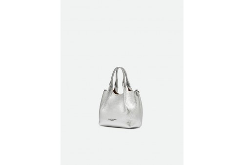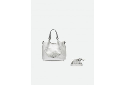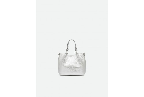 GIANNI CHIARINI BS 9718 RNGDBL T.U. DUA SILVER-CLAY. L'icona del brand, la borsa DUA, è realizzata in pelle bubble double, caratterizzata da una texture unica. Dotata di un monoscomparto sfoderato, presenta profili superiori in pelle martellata e doppi manici in tono. Pratica ed essenziale, è perfetta per completare ogni look con stile. Può essere portata a mano o a spalla. Dimensioni: 19x20x8 cm.