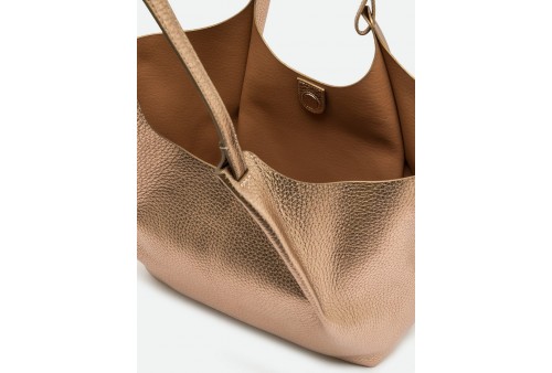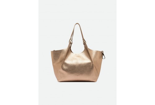 GIANNI CHIARINI BS 9720 RNGDBL T.U. DUA MIRAGE-CLAY. L'icona del brand, la borsa DUA, è realizzata in pelle bubble double dalla grana maxi, caratterizzata da una texture unica e distintiva. Dotata di un monoscomparto sfoderato, presenta profili superiori in pelle martellata e doppi manici in tono. Pratica ed essenziale, è perfetta per completare ogni look con stile. Può essere portata a mano o a spalla. Dimensioni: 34x38x16 cm.