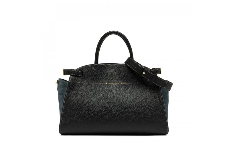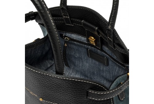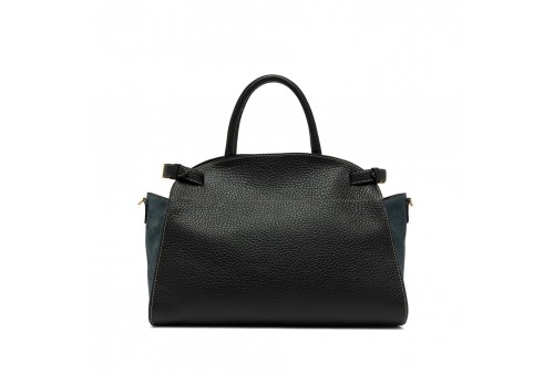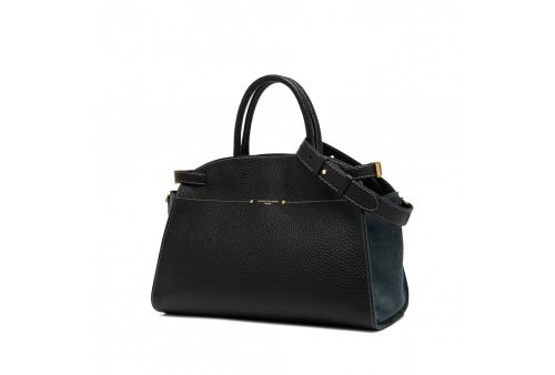 GIANNI CHIARINI FARAH BS 11466 TKL-CM NERO. Farah by Gianni Chiarini Firenze è realizzata in pelle grana maxi, arricchita da fianchi esterni in suede tono su tono. Caratterizzata da una forma trapezoidale, presenta dettagli iconici che ne esaltano il design. Arricchita da un cinturino esterno e da una chiusura in metallo, per un tocco contemporaneo e unico. Dotata di due manici superiori in pelle e di una tracolla removibile, può essere indossata anche crossbody. Dimensioni: 39x27x19 cm
