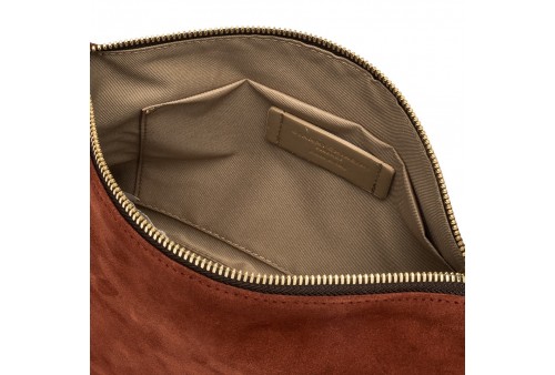 La borsa Nora Pouch by Gianni Chiarini Firenze è realizzata in morbida pelle scamosciata. È dotata di un cinturino in pelle che permette di portarla al polso e di una tracolla regolabile, entrambi removibili. Presenta una chiusura con zip per una maggiore praticità. Dimensioni: 28x21x9 cm.