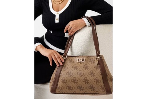 GUESS KARNILLA LOGO OS990122 LATTE LOGO/BROWN. Esterno in similpelle. Chiusura con zip. Metalleria dorata.