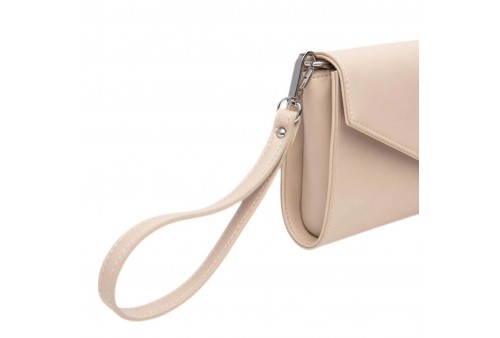 Realizzata in materiale liscio color beige, questa pochette si distingue per la sua tonalità neutra e delicata, facile da coordinare con diversi outfit. La chiusura con patta a forma di busta dona carattere al design, mentre il logo Nero Giardini frontale aggiunge un dettaglio discreto e distintivo.