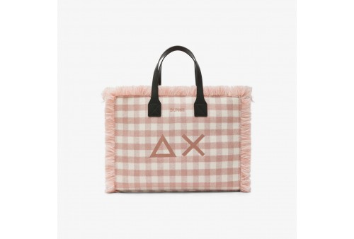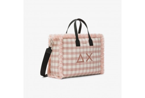 SUN68 Shopping bag midi Cali in lana check rosa. Cali è la shopping bag SUN68 che unisce versatilità e stile. Accessoriata con una tracolla rimovibile per il massimo comfort, è proposta in diversi formati e materiali sofisticati per interpretare molteplici stili e occasioni d'uso.34X27X15cm