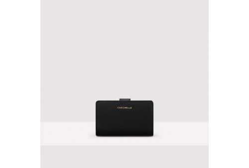 COCCINELLE Metallic Soft E2MW511E701. Questo portafoglio della linea Metallic è impreziosito dal logo Coccinelle in metallo. Pratico e capiente, risulta perfetto per la sua dimensione lunga ma compatta. Internamente è organizzato al meglio per avere sempre il necessario a portata di mano. Questo modello è realizzato in pelle lavorata tramite specifici macchinari e poi bottalata al fine di mantenerne la morbidezza. È una pelle molto resistente che si presta a una facile pulizia, ideale per un uso quotidiano.